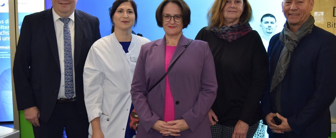 Begleiteten den Tag der Offenen Tür des Wertinger Krankenhauses: (von links) Landrat Markus Müller, Leitende Oberärztin der Akutgeriatrie und Inneren Medizin, Kiriaki Panagiotidou, Chefärztin der Akutgeriatrie und Inneren Medizin, Dr. Martina Brielmaier, Betriebsratsvorsitzende Martina Wölfle und Wertingens Bürgermeister Willy Lehmeier. (Foto: Ulrike Hauke)