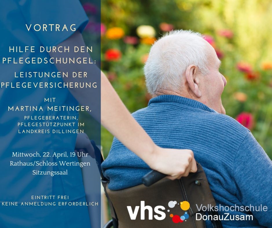 Wenn Menschen Pflege brauchen, stehen sie und ihre Angehörigen oft vor einem Berg an Fragen: An wen kann ich mich jetzt wenden? Wo bekomme ich Unterstützung und welche Hilfen gibt es? Was bezahlt die Pflegekasse? Und gibt es weitere Angebote, die mir helfen? Um bei Anliegen wie diesen wohnortnah, neutral und unabhängig zu helfen und zu beraten, steht der Pflegestützpunkt im Landkreis Dillingen bereit. Im Rahmen des vhs-Vortrags informiert das Team vom Pflegestützpunkt im Landkreis Dillingen über die Leistungen der Pflegeversicherung und zeigt Wege auf, wie diese Leistungen genutzt werden können: von der Beantragung der Leistungen über den Pflegegrad bis hin zu Geld- oder Sachleistungen sowie Verhinderungs- und Entlastungsleistungen für pflegende Angehörige. Gewinnen Sie zusätzlich Kenntnisse und lernen Sie Orientierungsmöglichkeiten durch den Pflege-Dschungel kennen. Hinter dem Pflegestützpunkt steht eine starke Kooperation: Getragen wird die Einrichtung vom Landkreis Dillingen a.d. Donau, dem Bezirk Schwaben unter der Leitung von Landrat Markus Müller und den örtlichen Krankenkassen. Diese breite Basis garantiert eine neutrale und unabhängige Beratung. Der Eintritt ist frei, eine Anmeldung bei der vhs ist nicht erforderlich. Weitere Infos zur Veranstaltung finden Sie im Internet Vortrag Pflegedschungel und telefonisch bei der vhs unter 08272 84180 oder 84181.